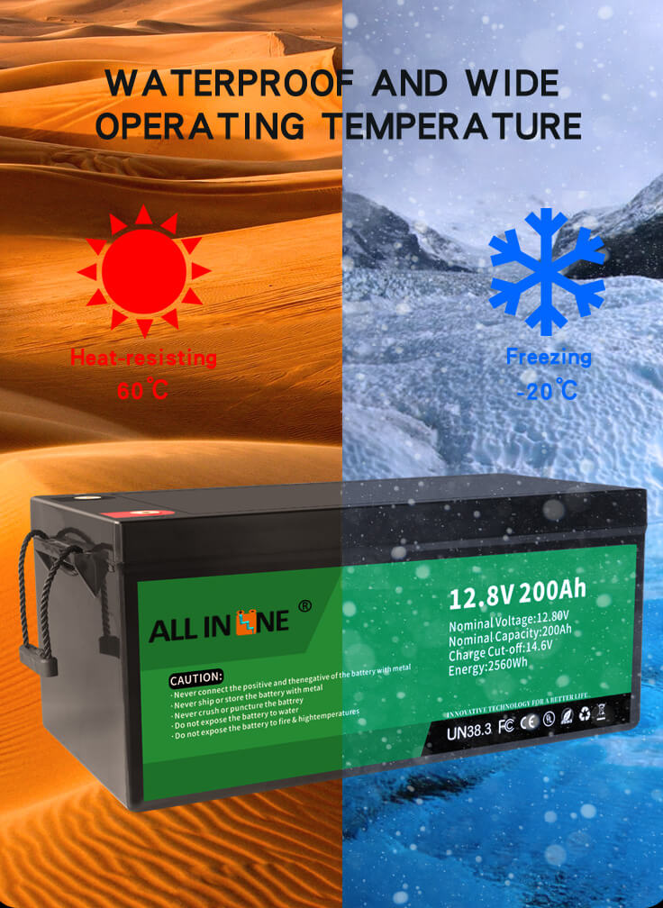 4. Plaša darba temperatūra: LiFePO4 akumulatoram ir plašs darba temperatūras diapazons -20 ° C ~ 60 ° C.