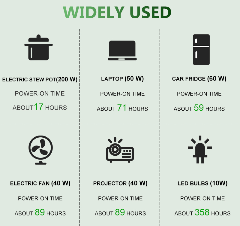 7. Plašs pielietojums: piemērots RV, treileru, jūras, laivu, sauszemes, rezerves barošanas avotiem un izslēgta tīkla lietojumprogrammām.