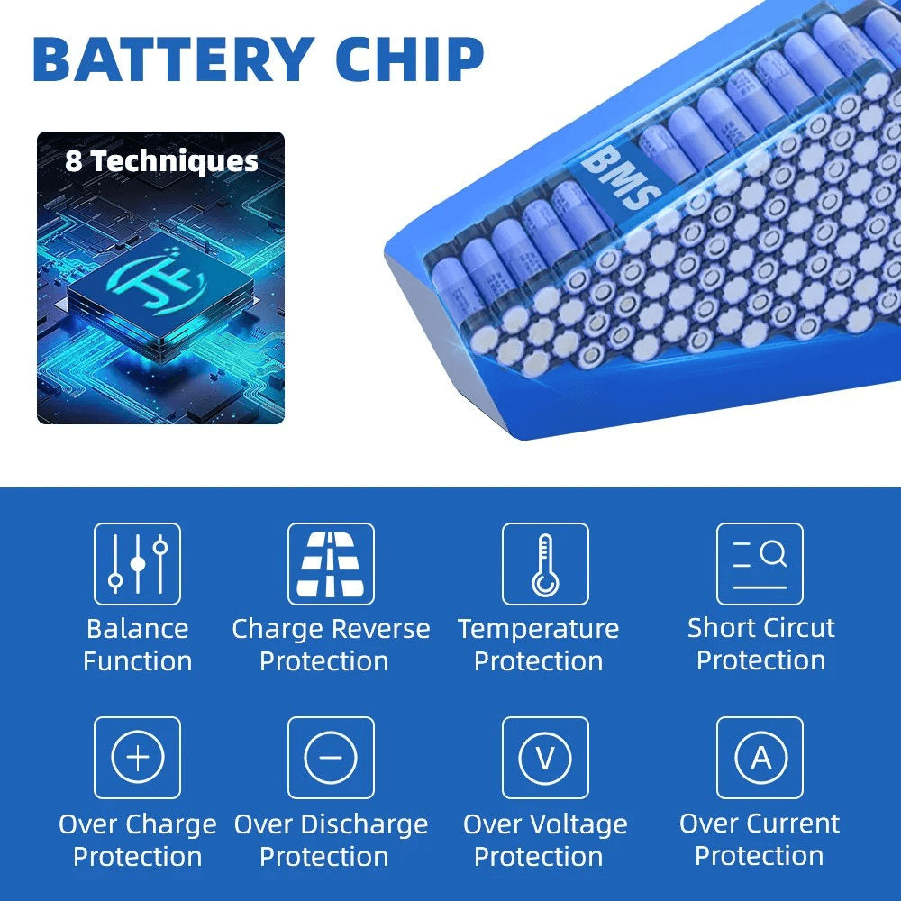 【Inteliģenta pārvaldība】 Iebūvēta akumulatora pārvaldības sistēma (BMS) un tālvadības uzraudzība drošībai un ērtībai.