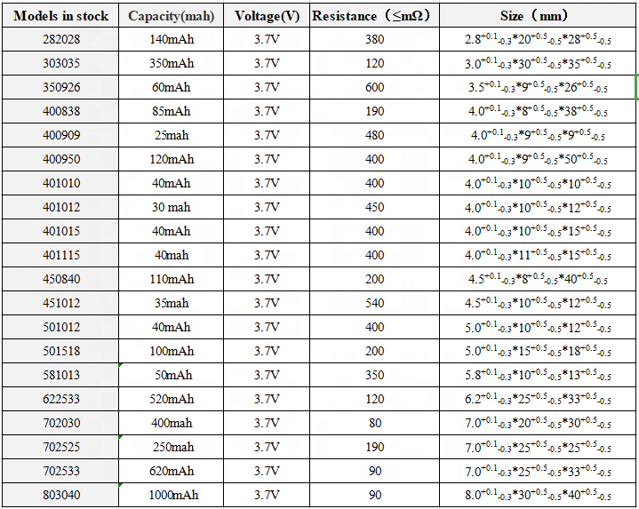produkta nosaukums | 581013 3,7 V 50 mAh polimēra litija akumulators | Piezīme | |