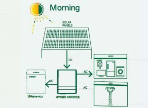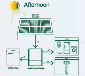 ![]() | Saulei rietot, baterijas darbinās maiņstrāvas slodzi. |