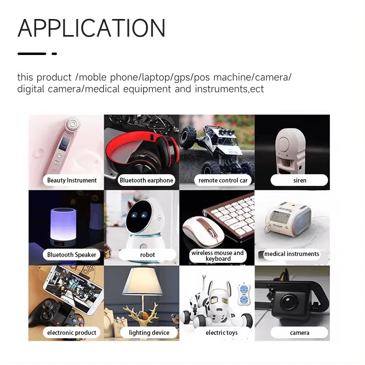 - Augsta popularitāte pielāgotai 3,7 V litija baterijai.