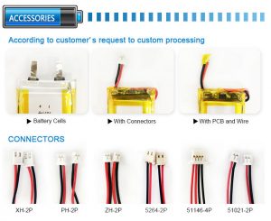 | 602030 | 6,0 * 20 * 30 mm | 6,2 * 21 * 32,5 mm | 3,7 V 300mAh |