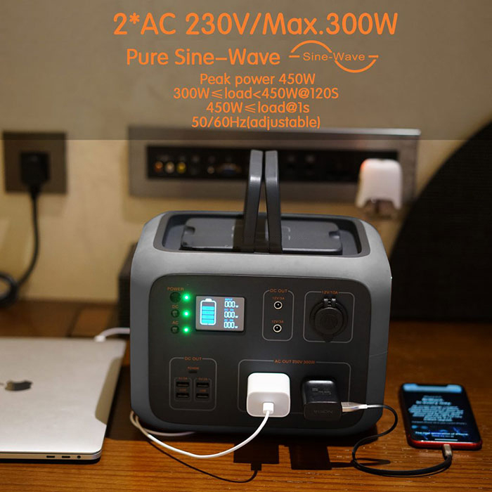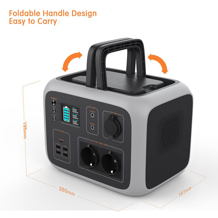 500Wh portatīvās ģeneratoru spēkstacijas barošanas avots ar diezgan 300W DC / AC pārveidotāju, DC / AC / USB izejām ceļojumiem ārpus mājas