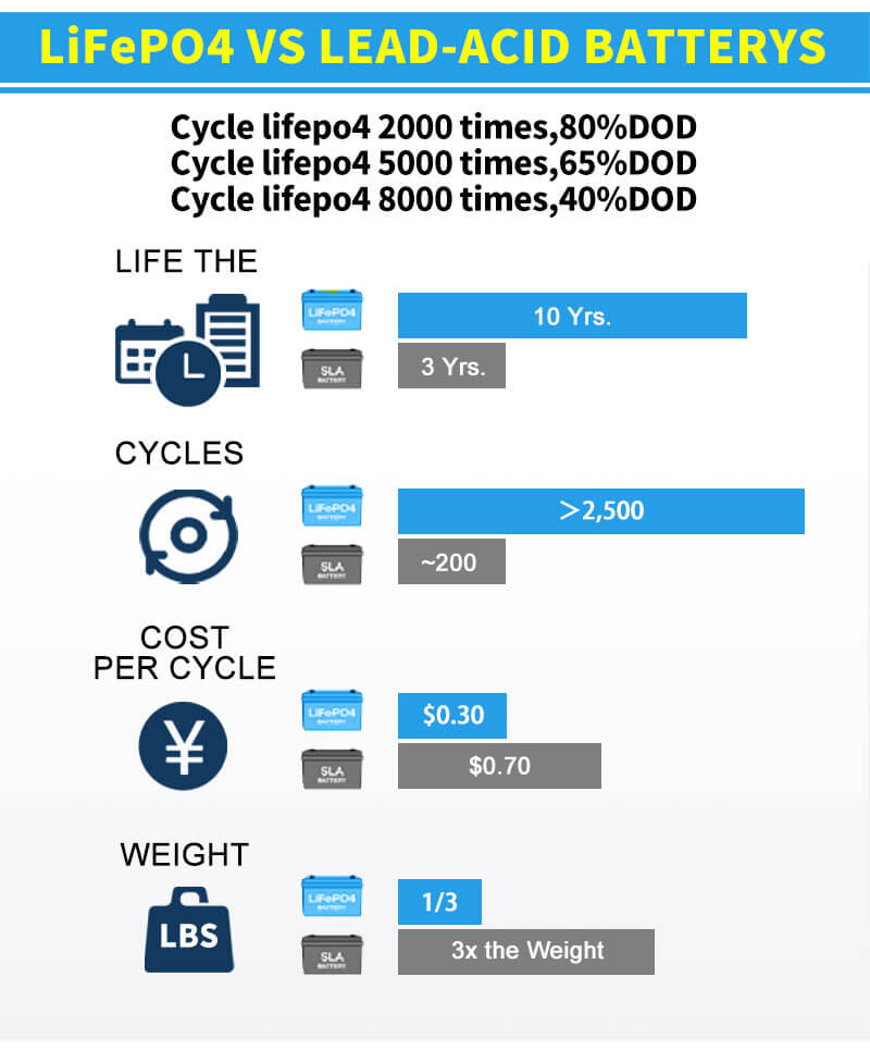 ♦ Vieglāks svars: aptuveni 40% no salīdzināmas svina skābes akumulatora svara. Svina skābes akumulatoru nomaiņa "kritums"